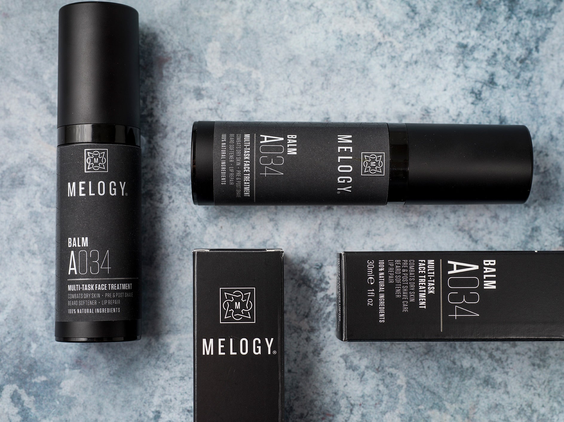 BALM A034 is a rich, waterless multipurpose product that can be applied to the face, neck and lips as a moisturiser to combat dry skin and reverse the effects of environmental and sun damage, to provide pre and post-shave care for a smooth, close shave, or to soften the beard.